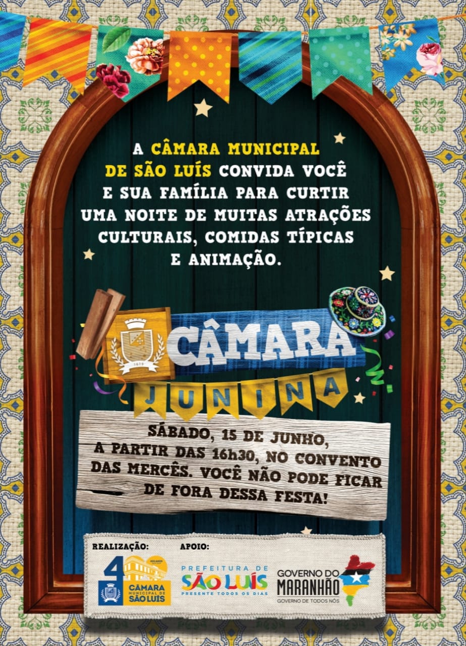 Comidas típicas; um ambiente seguro e familiar; além de muita alegria e uma programação composta pelo melhor das brincadeiras juninas do Maranhão. É desta forma que será realizado neste sábado, dia 15 de junho, a partir das 17h, o primeiro “Câmara Junina”, arraial promovido pela Câmara Municipal de São Luís,