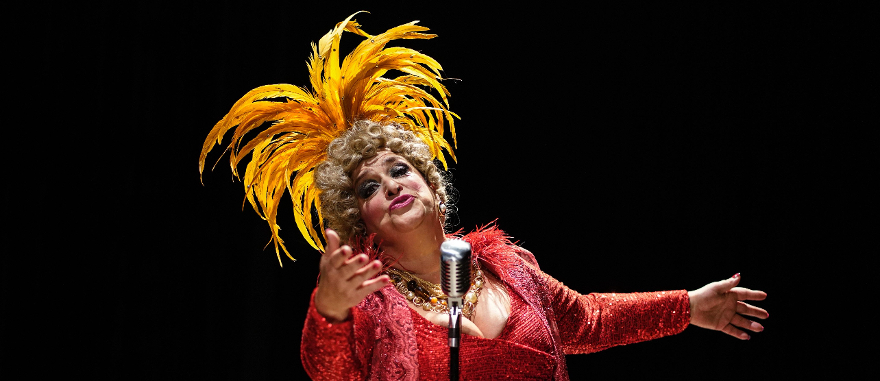 Com voz off de Miguel Falabella, o espetáculo que presta homenagem à icônica Dercy Gonçalves e rendeu prêmios à atriz e ao autor e diretor