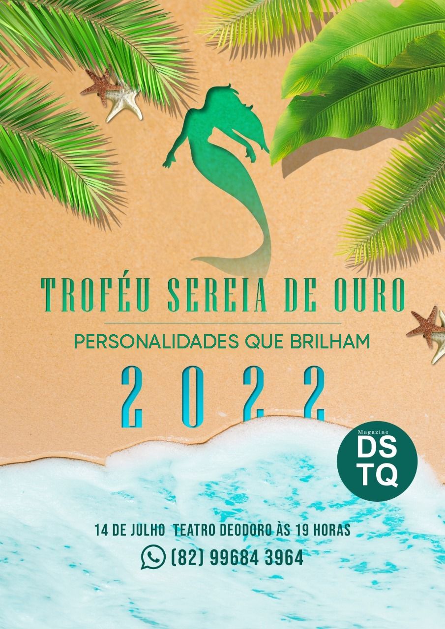 Troféu Sereia de ouro ocorrerá no dia 14 de julho às 19:00 horas no Teatro Deodoro com direção executiva Francinubia Farias, o evento destaca personalidades